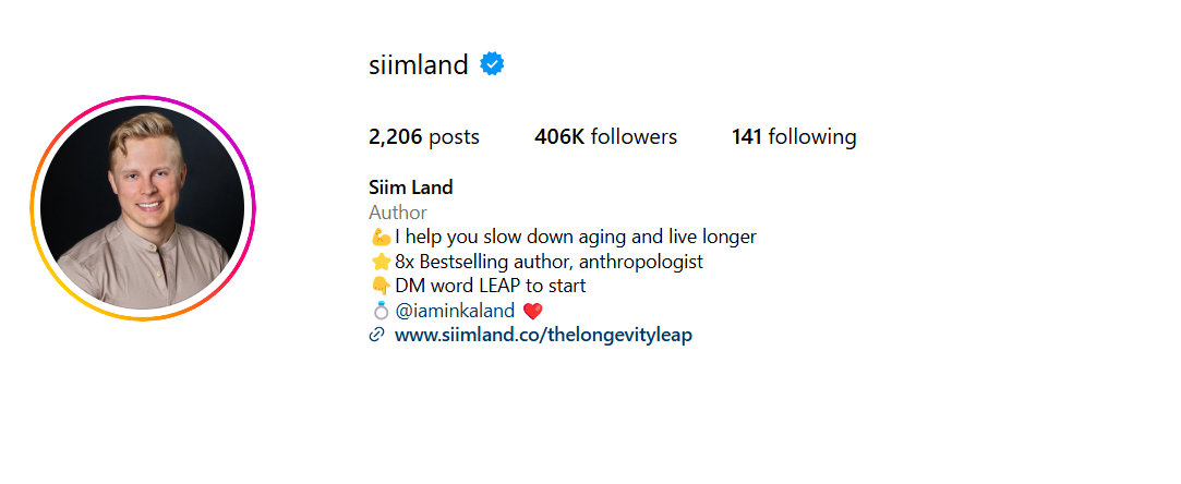 Siim Land | 406k IG | 152k YT | Longevity Expert & 8xBest-Selling Author