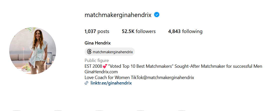 Gina Hendrix | 52k IG | 150k TikTok | Matchmaker for Billionaires & High-Profile Bachelors